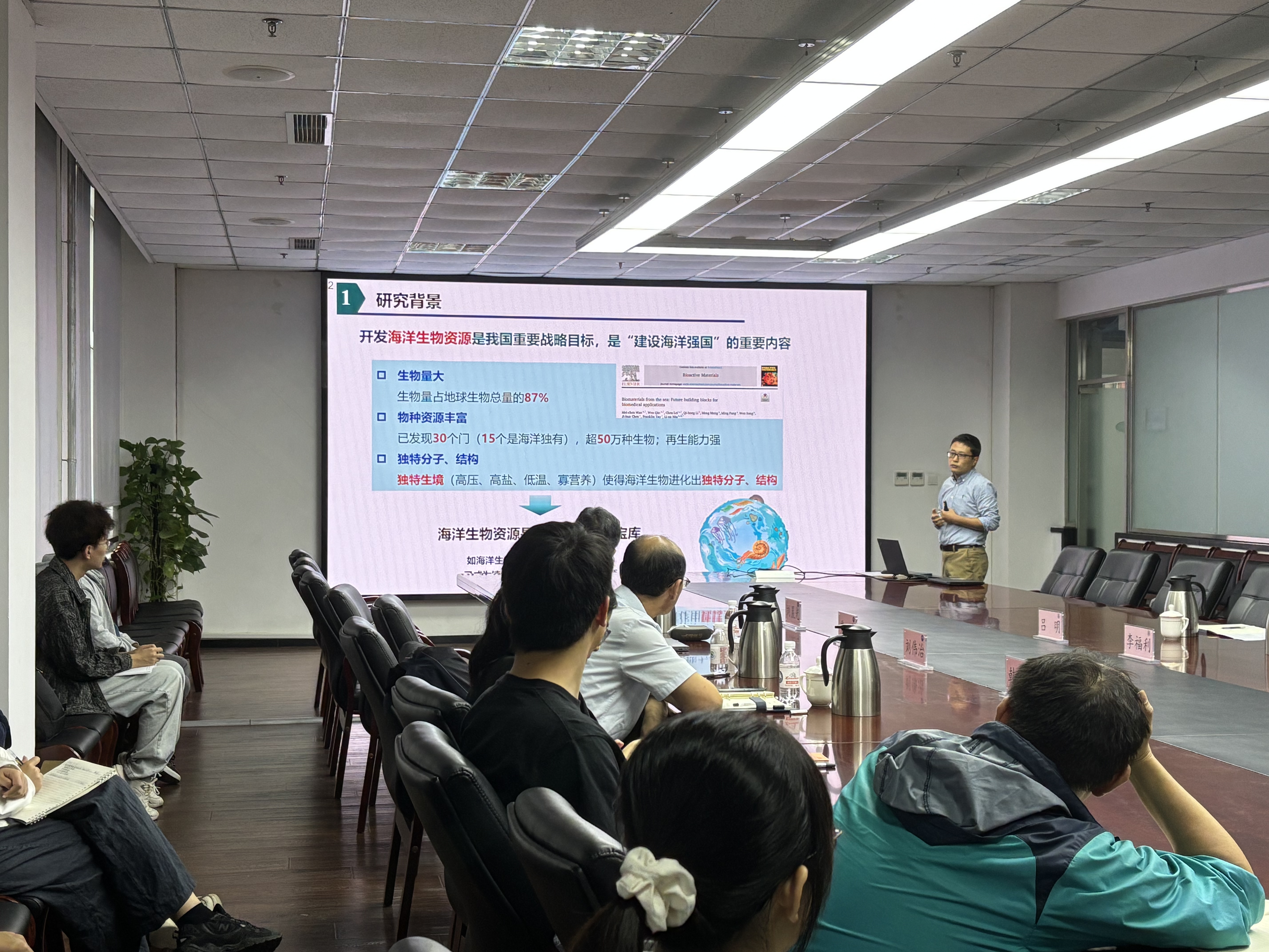报告结束后,刘晨光教授、韩峰教授、刘伟治教授和黄方教授共同访问了一碳生物技术研究中心,与团队的科研人员和学生们进行了深入的交流。他们分享了在微生物高效生物转化方面的经验,并就海洋多糖降解酶改造与应用领域进行了深入探讨,交流了海洋特色蛋白机制以及蛋白质功能改造等应用领域的合作想法。
