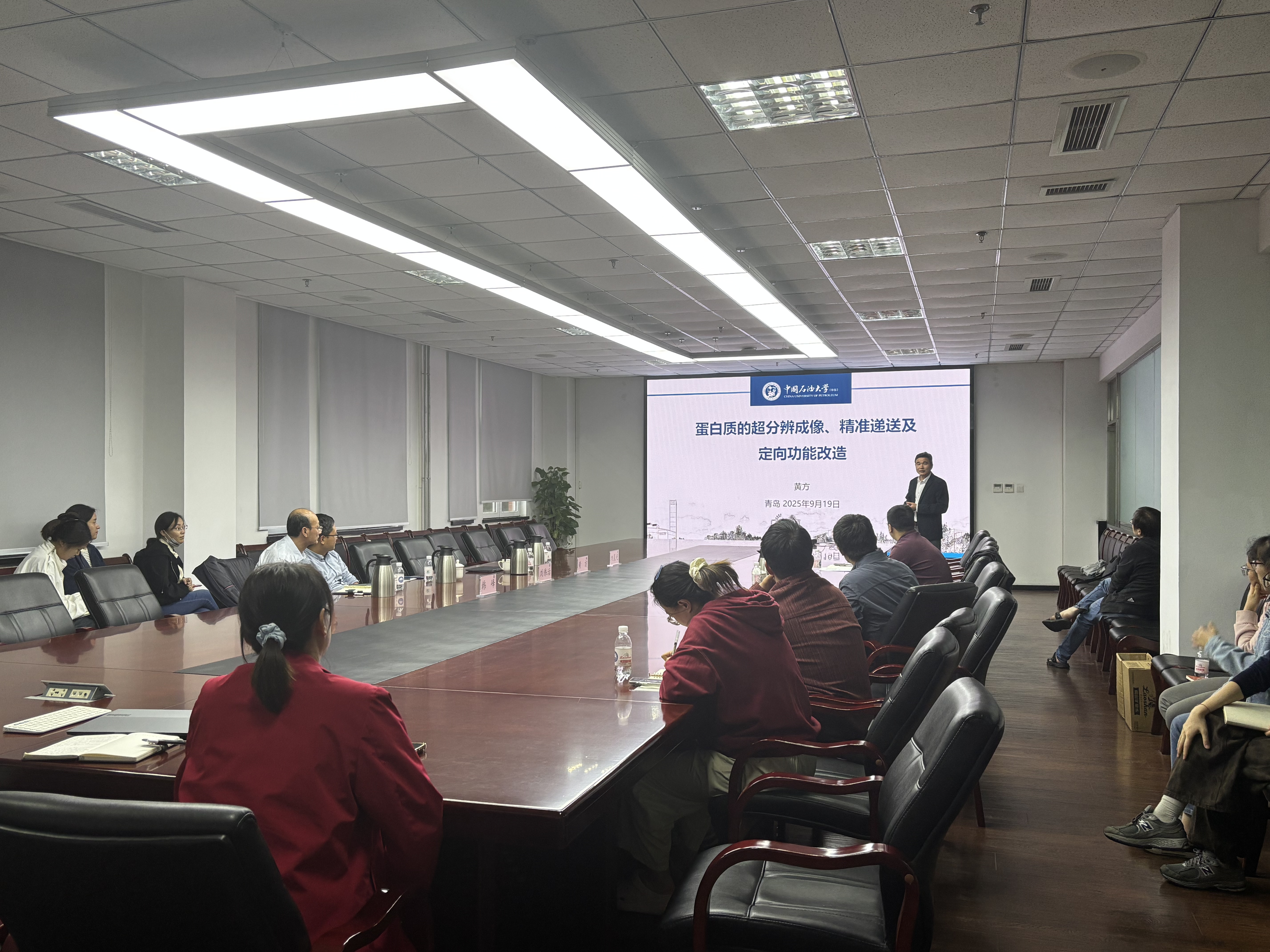 黄方教授的报告介绍了蛋白质研究领域的最新进展,内容涵盖荧光成像、细胞递送与酶分子改造三个方向。具体包括:1)发展基于新型荧光纳米材料与人工智能融合的超分辨成像技术,实现蛋白质动态过程的高精度可视化,并展示其在生物机制研究中的应用;2)建立活细胞水平的靶向递送体系,重点介绍高效、可控的蛋白质递送新方法,并集成实时成像技术追踪递送过程与细胞响应;3)针对甜菊糖苷生物合成需求,开展酶分子的理性设计与功能重塑,提升其催化效率与稳定性。本工作旨在发展蛋白质研究的新工具与新方法,并推动其在合成生物学与生物医学中的应用。